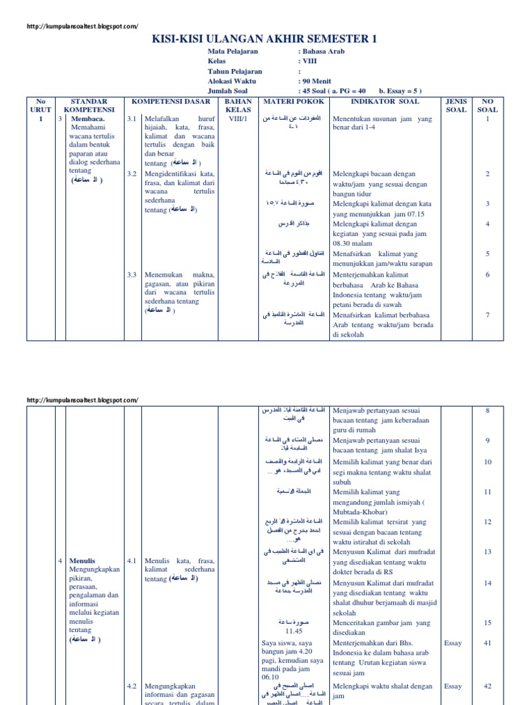 Soal pat k13 bahasa arab smp/mts kelas 8 semester 2 ini bukanlah bocoran soal melainkan cuma soal latihan buat pemantapan peserta didik dalam soal tersebut bisa dijadikan bahan referesi bapak dan ibu guru dalam pembuatan soal. This book soal bahasa indonesia kelassmp kelas 1 semester 2 dan jawabanya is absolutely usefull and able to solve your problem. Soal uts bahasa arab kelas 2 semester 1 dan soal bahasa arab mts semester ganjil guru madrasah blog soal ulangan harian bahasa arab. Soal bahasa indonesia kelas 8. 30 25 pilihan baca juga :