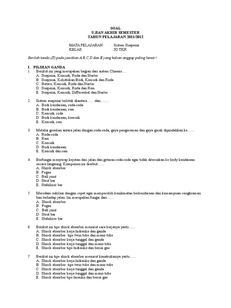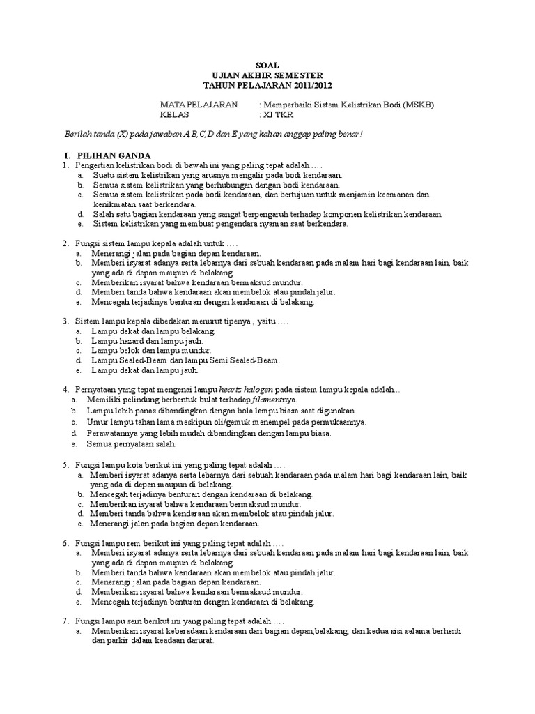 50 Soal Produktif Otomotif Kelas Xii Lengkap Dengan Kunci Jawaban Administrasi Ngajar Pdf from imgv2-1-f.scribdassets.com Check spelling or type a new query. We did not find results for: Maybe you would like to learn more about one of these? Soal kelistrikan body tkr dan jawabannya.